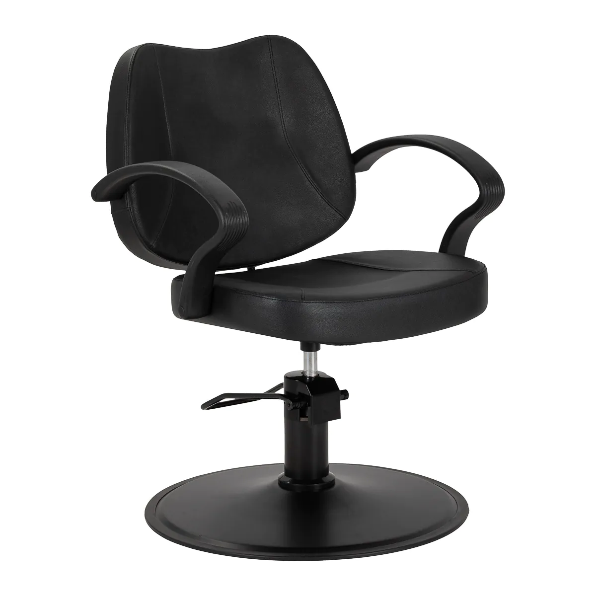 Frizerska stolica Hair System Borneo kombinira moderan dizajn i funkcionalnost. Opremljena učinkovitim hidrauličkim podizačem, omogućuje podešavanje visine potrebama frizera i klijenta , osiguravajući udobnost tijekom rada. Njen minimalistički dizajn elegantno nadopunjuje dekor svakog salona, a istovremeno jamči udobnost. Ergonomija rada Izdržljivo hidraulično podizanje omogućuje podešavanje visine sjedala između 45 i 55 cm , čak i kada klijent sjedi. To olakšava ergonomski rad , omogućujući frizeru da prilagodi visinu svojim potrebama i visini klijenta. Naslon pruža izvrsnu potporu leđima , što je posebno korisno tijekom dugih tretmana. Ergonomski oblikovani oblik i zaobljeni gornji rub naslona olakšavaju pristup vratu, potiljku i liniji kose , podržavajući precizno šišanje, stiliziranje i bojanje. Detalji: Boja: nijanse crne Podizanje: hidraulično Baza: okrugla Boja baze: nijanse crne