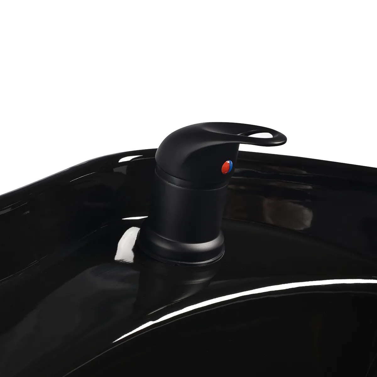 Elegantni praonik za kosu Odgovarajuća dubina crne keramike koja sprječava pretjerano prskanje vode ili proizvoda korištenih tijekom tretmana. To omogućuje udobno i učinkovito obavljanje širokog spektra usluga . Kut zdjele je podesiv, što olakšava prilagodbu individualnim potrebama . Visokokvalitetni materijali koji su korišteni čine sudoper izdržljivim, otpornim na promjenu boje i ogrebotine te vrlo jednostavnim za čišćenje . Odgovarajuće oblikovani rub i nagnuti naslon pružaju potporu i udobnost tijekom pranja kose, a zahvaljujući udobnom crnom plastičnom poklopcu, klijenti neće osjećati nelagodu hladne keramičke površine.